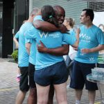 Antes de iniciar o trajeto de 4 km, com duração de aproximadamente 50 minutos, os participantes realizaram um aquecimento com um profissional de educação física.