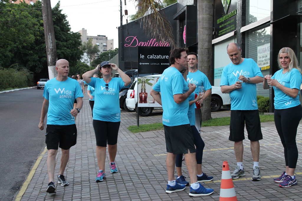 Antes de iniciar o trajeto de 4 km, com duração de aproximadamente 50 minutos, os participantes realizaram um aquecimento com um profissional de educação física.