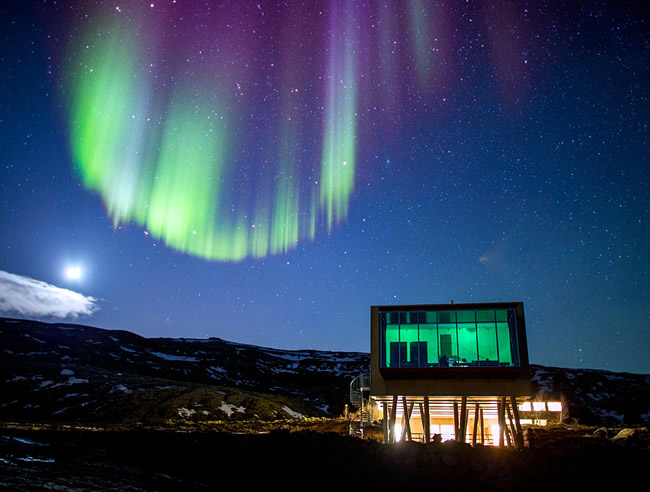 Hotel sustentável na Islândia oferece vista privilegiada para Aurora Boreal