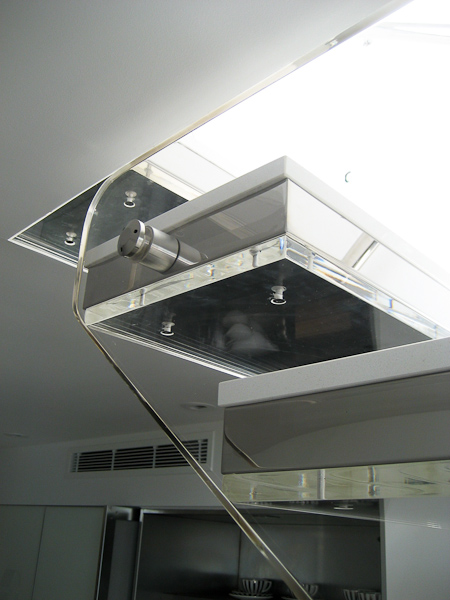 Escadas suspensas criam um efeito flutuante por parecerem, aparentemente suspensas no ar. Em ambientes onde a escada possa não ficar enclausurada entre paredes, a leveza visual, dará a impressão de espaços muito mais amplos, além do que, é claro, realmente ocupam mesmo espaço e decoram o ambiente lindamente.