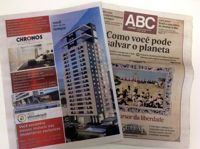 ABC Classificados de domingo, 14 de setembro do Jornal NH com anúncio dos empreendimentos Chronos Residencial, Allegro Residencial e Altos Horizontes da Athivabrasil. Conheça mais nos links: www.allegroresidencialnh.com.br www.chronosresidencial.com.br www.altoshorizontes.com.br