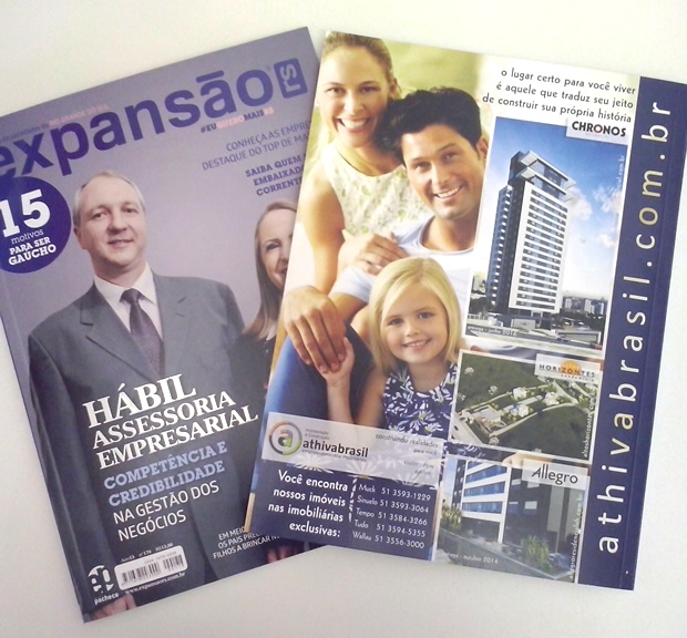 Athivabrasil anunciando na revista Expansão seus três novos empreendimento: – Chronos Residencial – Altos Horizontes Condomínio – Allegro Residencia